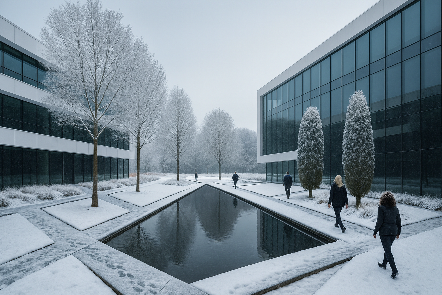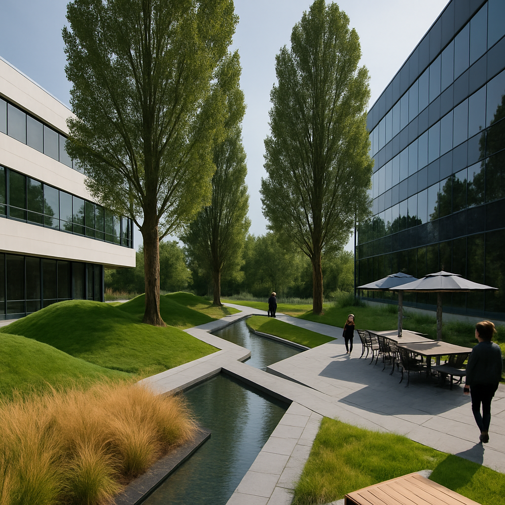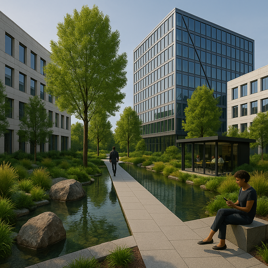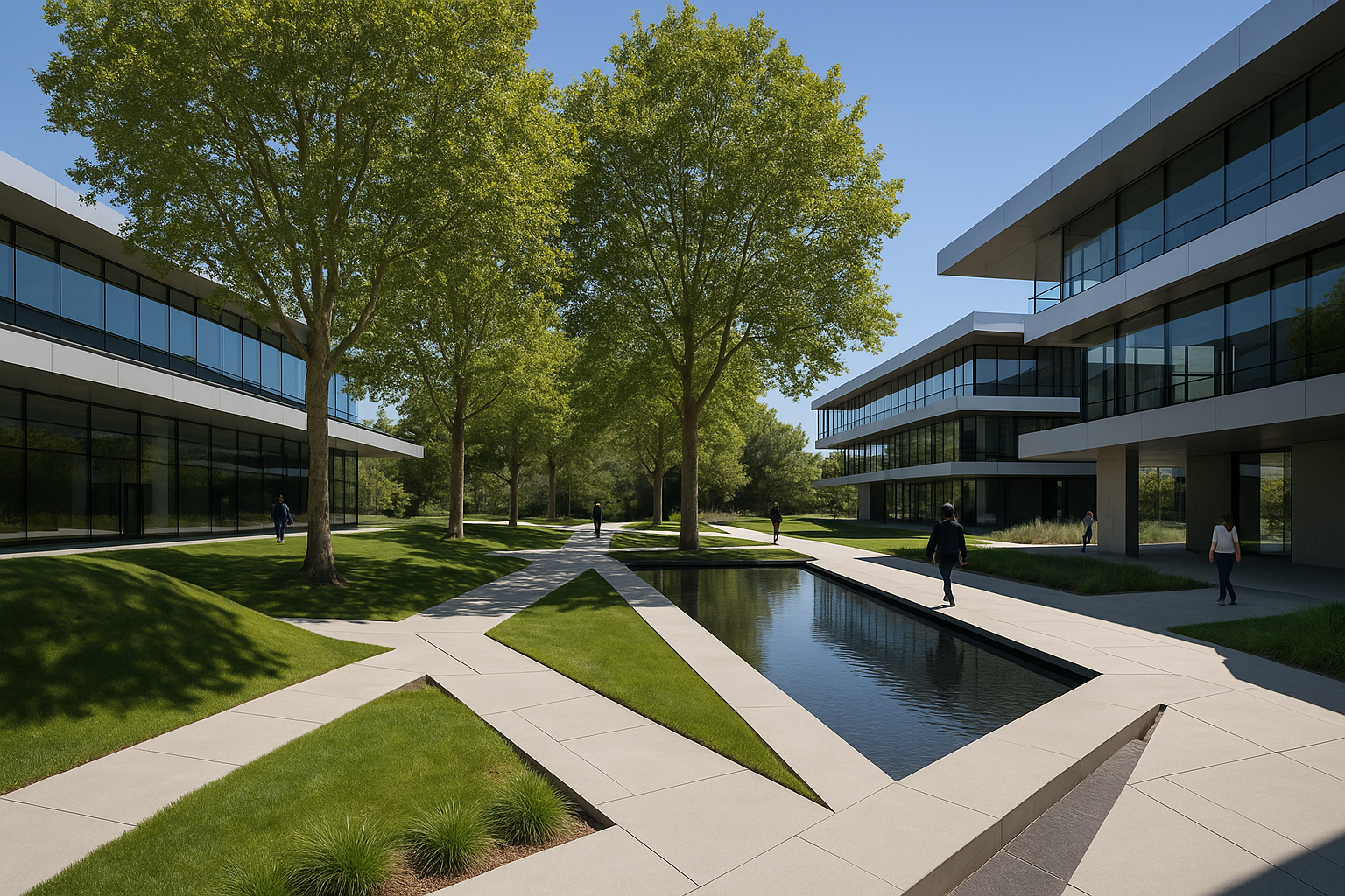 a modern corporate park design was created for this large New Jersey based Law Firm. inspired by Parc de Citron in Paris circulation was a main thread of the design with moments and outdoor areas for gathering and reflection was designed to allow an open dialogue between landscape and user.