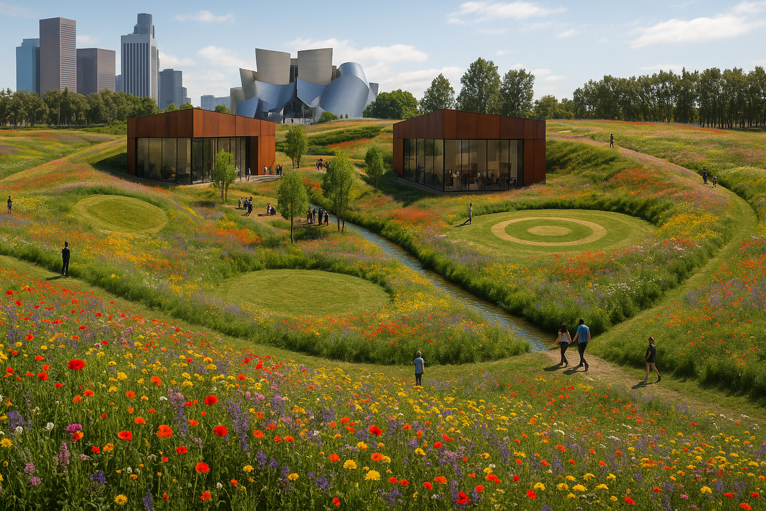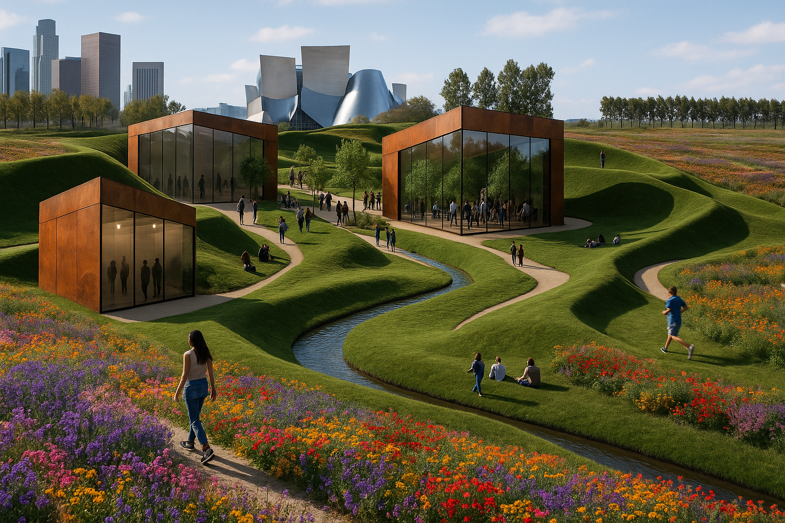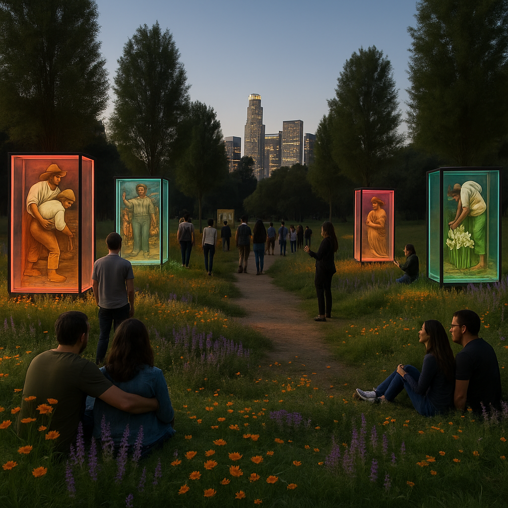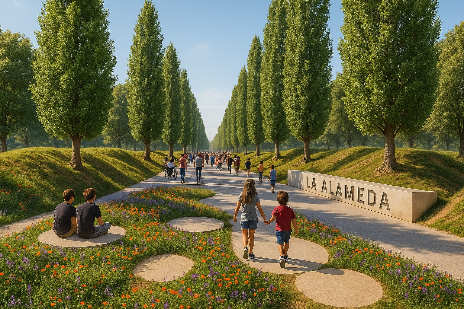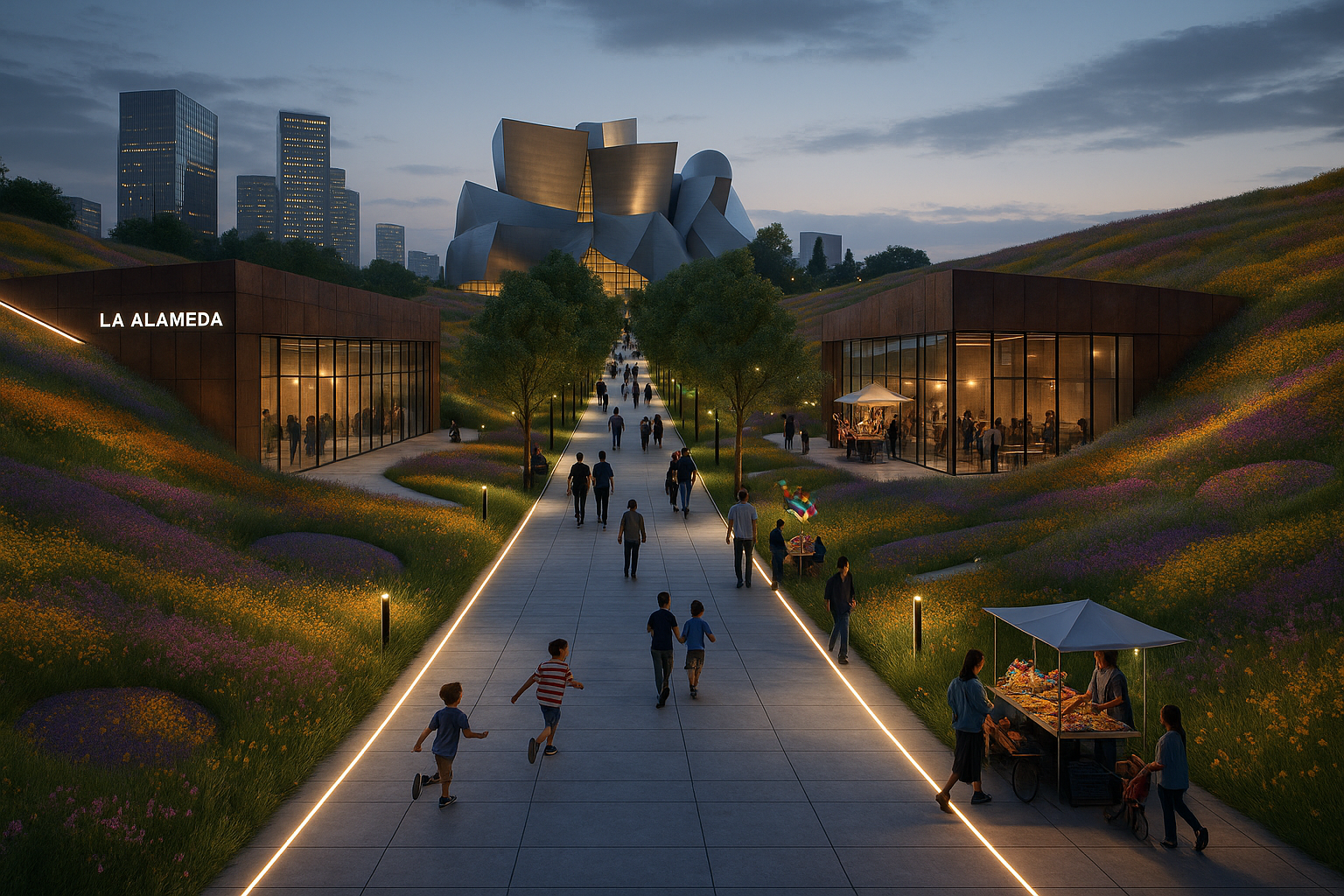 Downtown Los Angeles needs a CENTRAL PARK - a main park that acts as the unifier for its rapidly growing downtown population. La Alameda is a plan to create a truly current & modern park design smack in the center of Downtown. On a sloped site with the Disney Opera House at the top & City hall at the bottom the park used the influences of Diego Rivera’s famous painting LA ALAMEDA & the life depicted in this ground breaking painting. Through the use of the teams own painting creations & state of the art programming concepts & modeling. LA ALAMEDA is an extraordinary example of original design & progressive urban park design & development strategies.