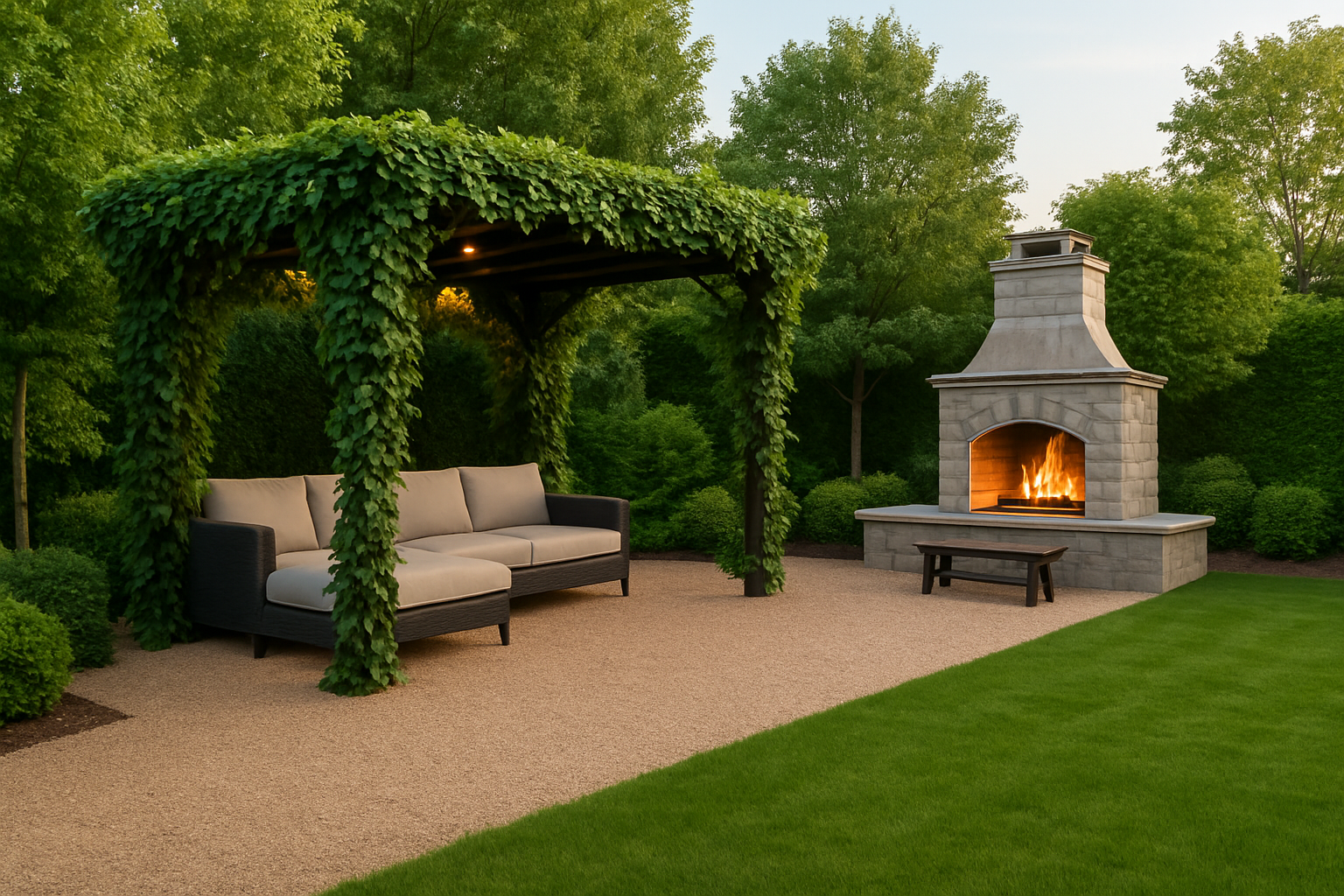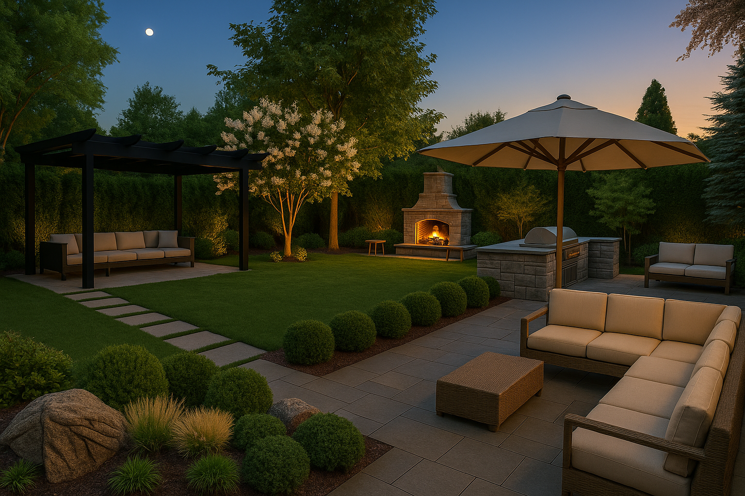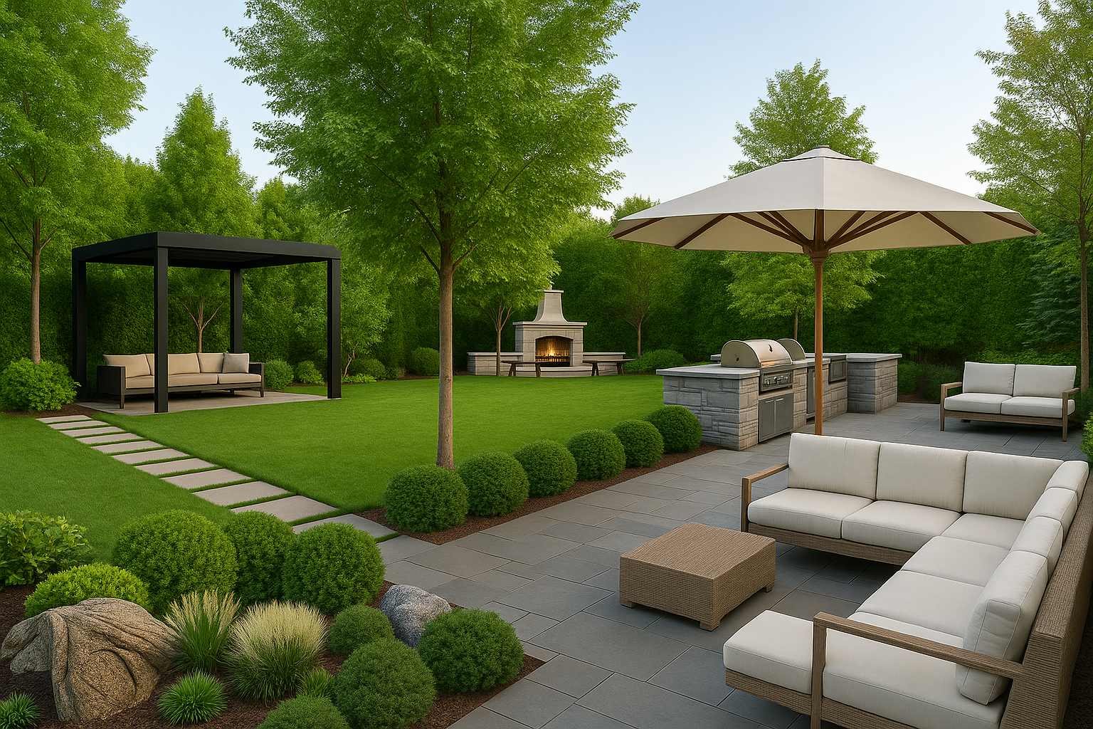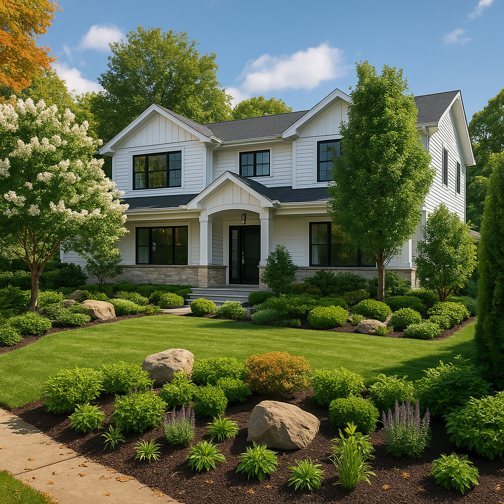 ALS has set out to create a Contemporary / Classic Residential Landscape through the integration of timeless & sophisticated materials and simple programming. The Landscape Design uses a simple pallette of Plant Material with varying shades of Green and white as the accent color, the material selection provides year round vegetation & color. Natural Stone Materials & Surfaces are used throughtout the design to create a rustic, strong gray color pallette - Large Stone Slabs are used as walking surfaces, Decomposed Granite surfaces create a unique texture surface, The Outdoor Kitchen & Fireplace is finished with Stone Cladding, and large Natural Boulders which are strategically positioned throughout the property. Respecting the Architectural Design and clean lined elegance of the Residence the Landscape serves as a perfect harmony to the Residence and maximizes the potential and positioning of the land around the residence. The Programming of the design provides a mix of activity & engagement for everyone - play a game of pick up on the half court b-ball court, pick fresh vegetables & herbs in the vegetable garden plots, cozy up near the Stone Hearth Fireplace, or sit on the front porch & take in the landscape of your front yard.