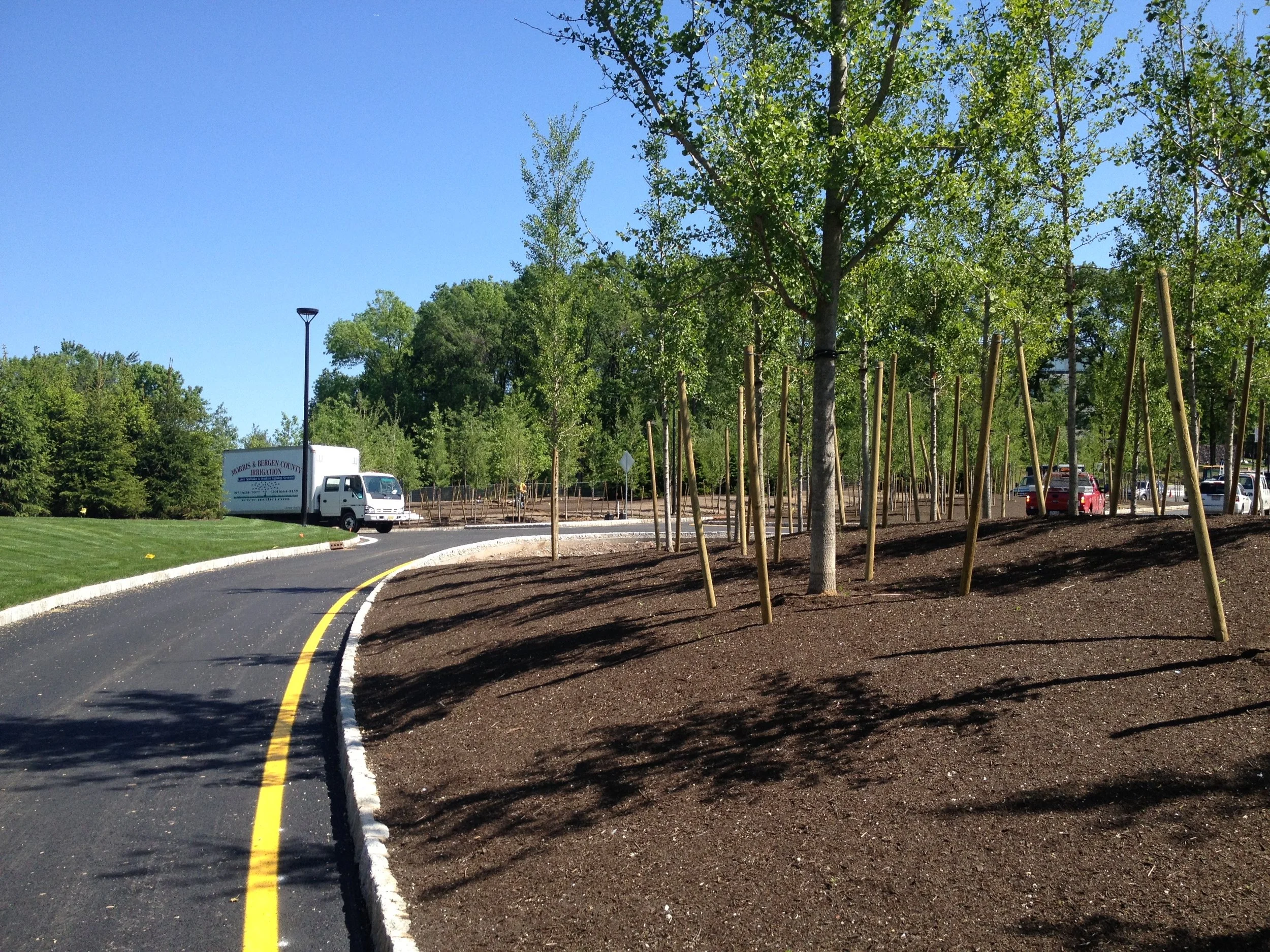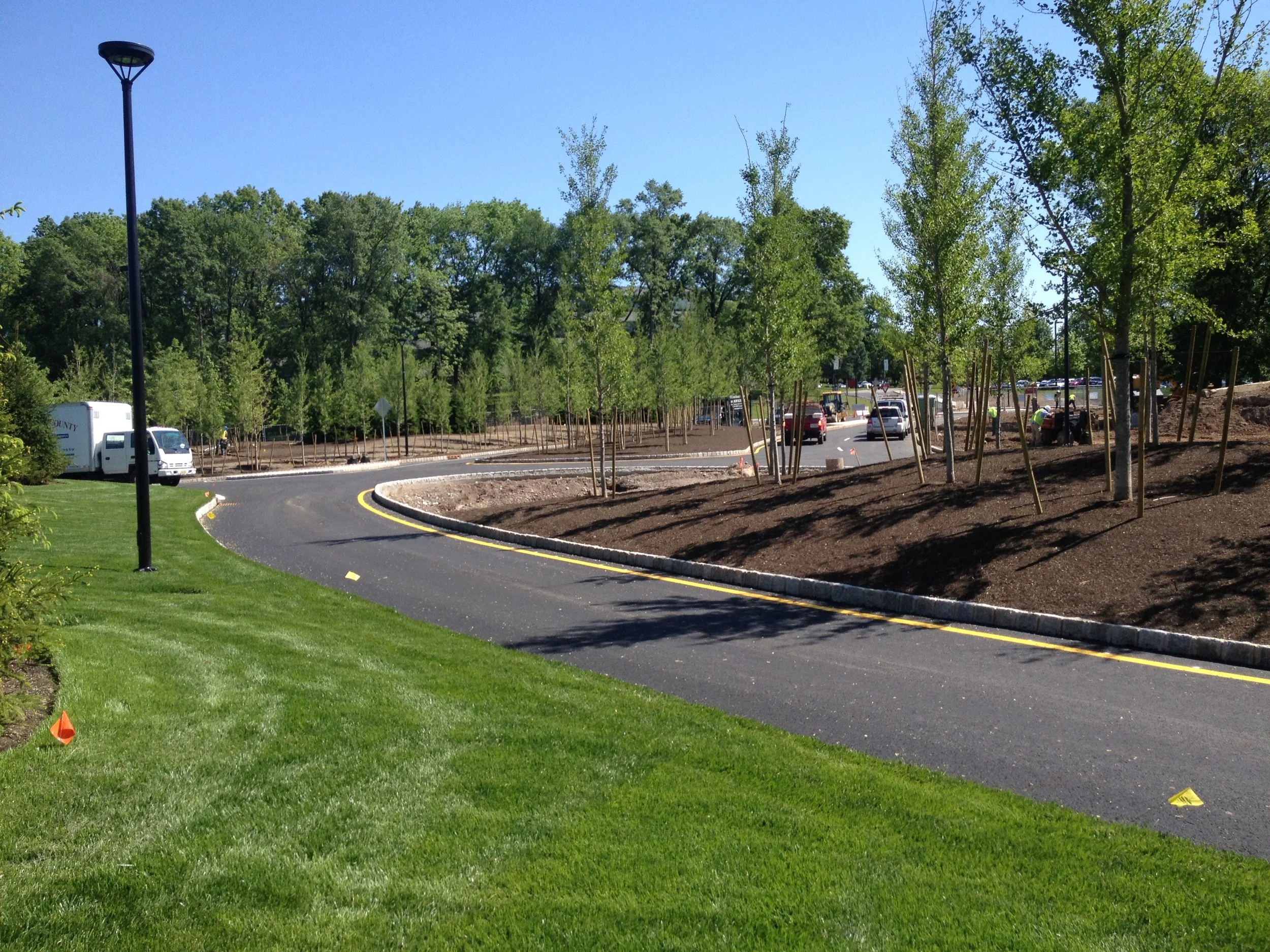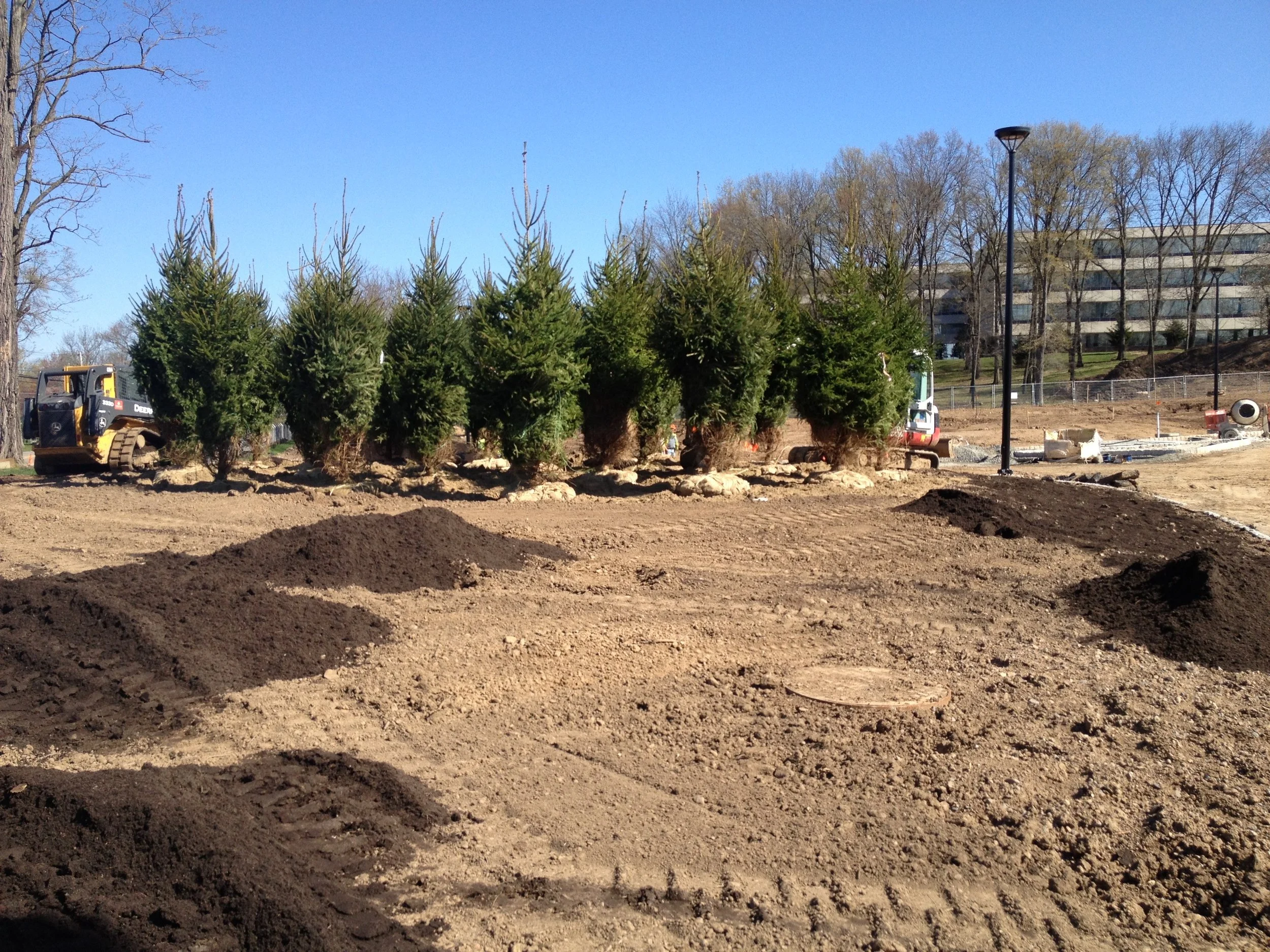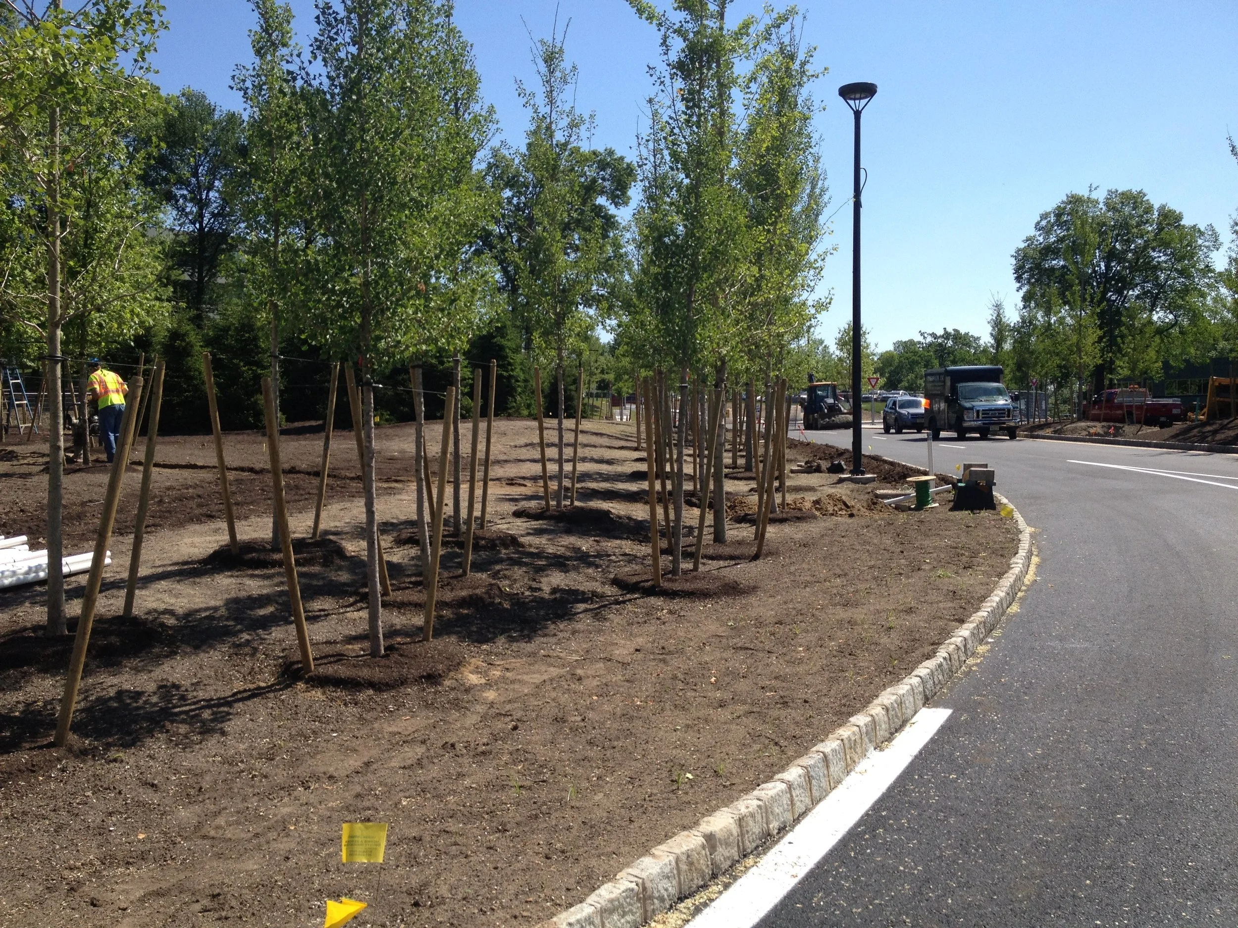 A large scale landscape development project at the Novartis Pharmaceutical Campus a redevelopment of the campus and entrance. The project included the procurement and installation of over 17,000 Cubic Yards of Engineered Soil five different soil profiles, hundreds of large scale evergreen & deciduous tree specimens - Pines, Ginkos, London Plane Trees and thousands of shrubs and ground covers, extensive Irrigation, hardscape areas include custom paver, cobblestone, & concrete installation, Thousands of square feet of sod installation, extensive site work and under drainage, and erosion control measures across three separate areas of the campus.