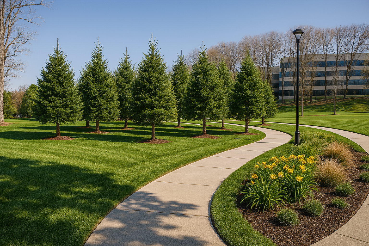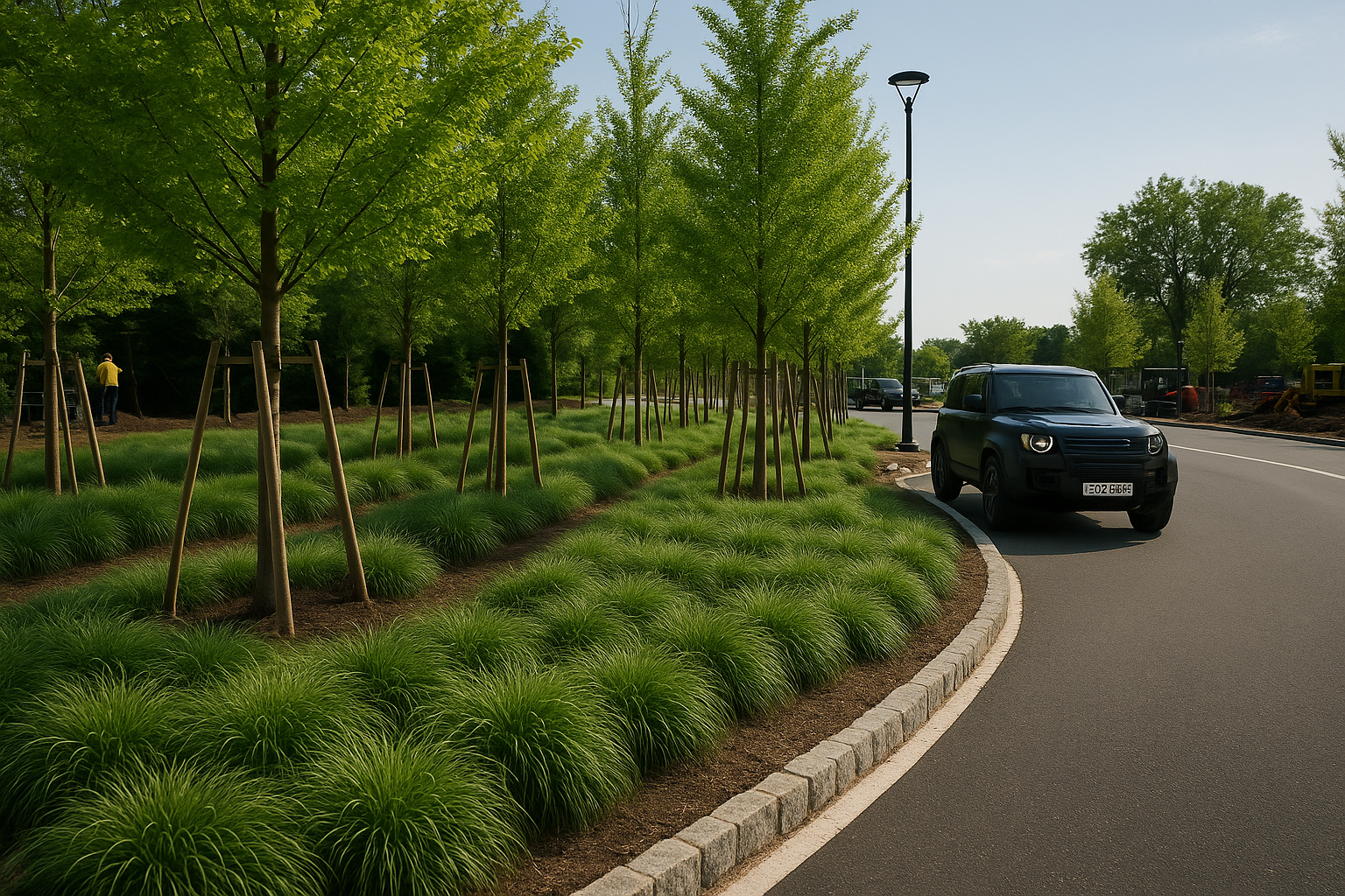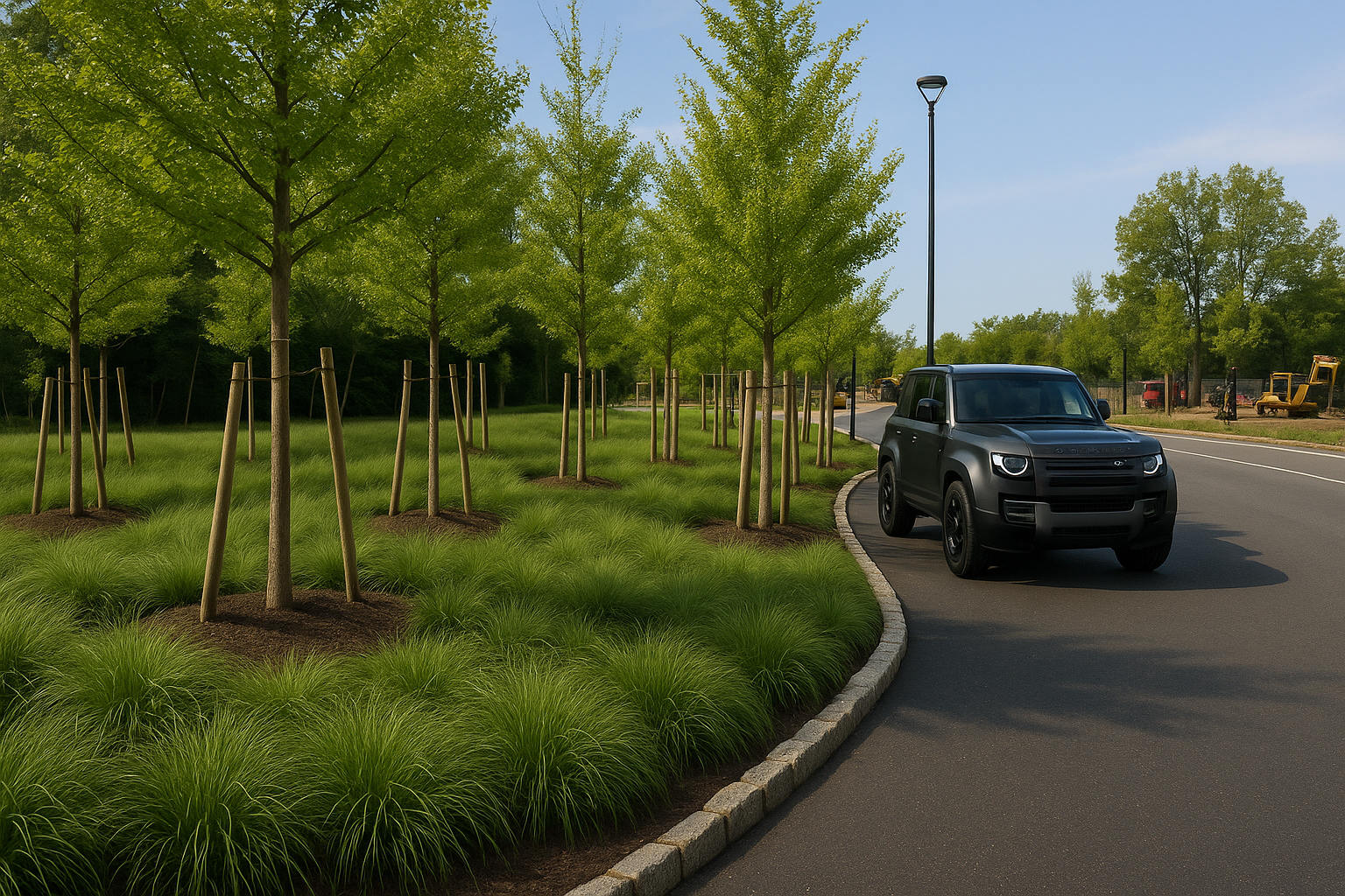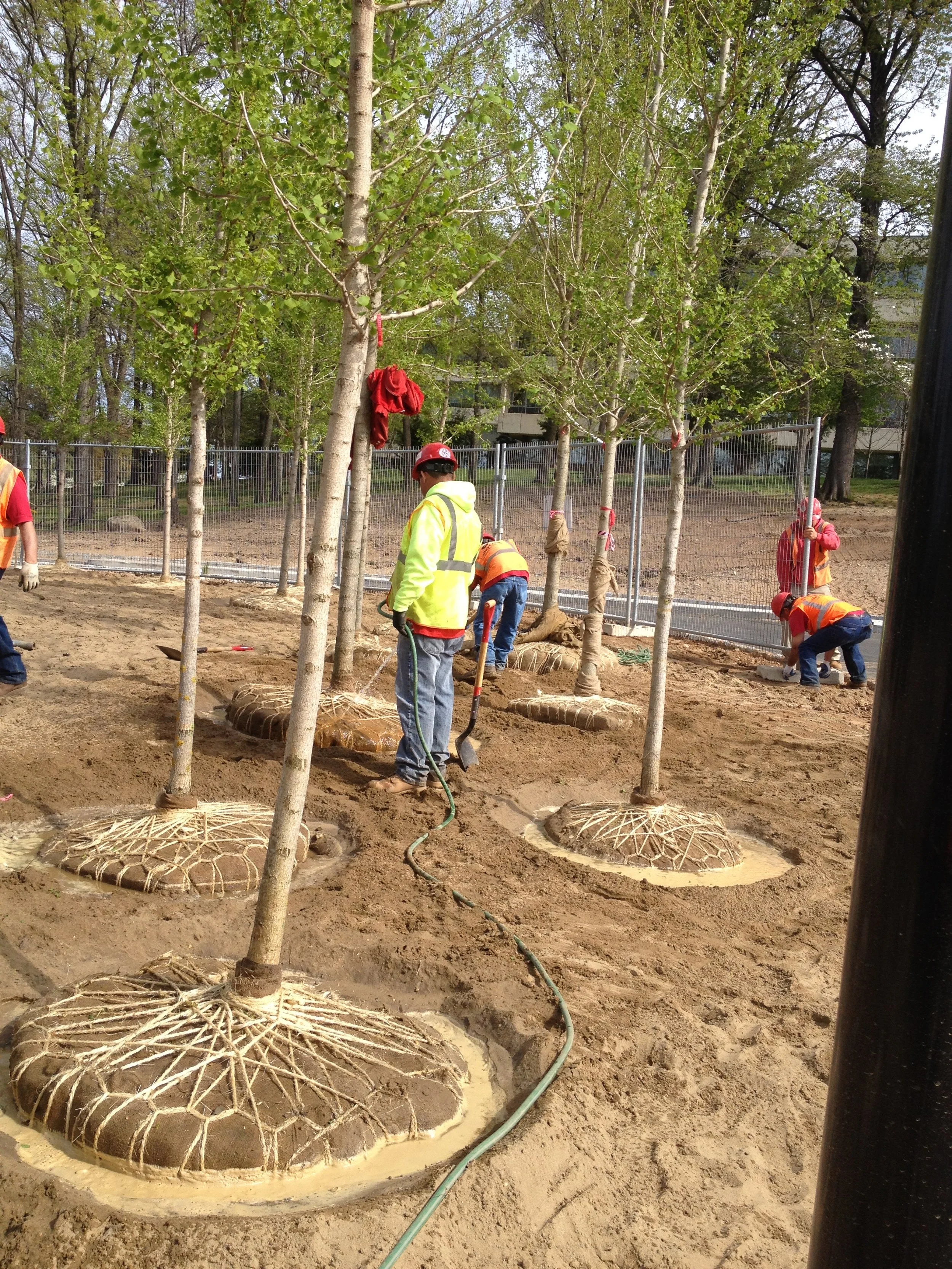A large scale landscape development project at the Novartis Pharmaceutical Campus a redevelopment of the campus and entrance. The project included the procurement and installation of over 17,000 Cubic Yards of Engineered Soil five different soil profiles, hundreds of large scale evergreen & deciduous tree specimens - Pines, Ginkos, London Plane Trees and thousands of shrubs and ground covers, extensive Irrigation, hardscape areas include custom paver, cobblestone, & concrete installation, Thousands of square feet of sod installation, extensive site work and under drainage, and erosion control measures across three separate areas of the campus.