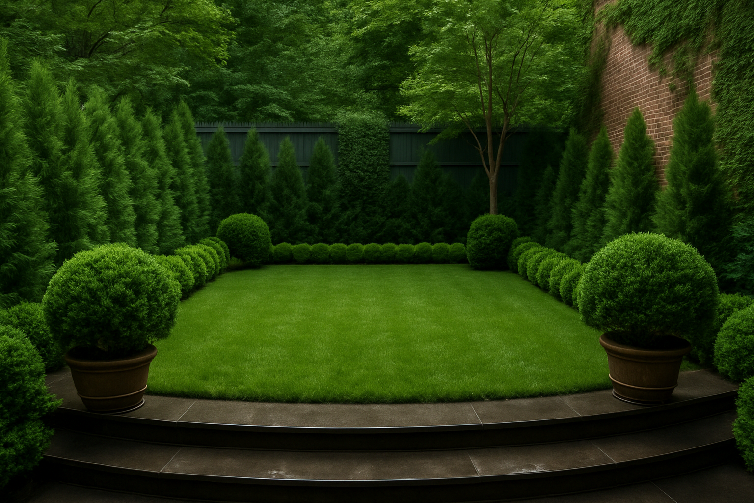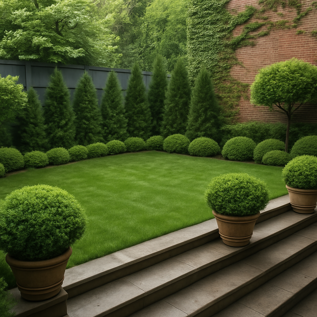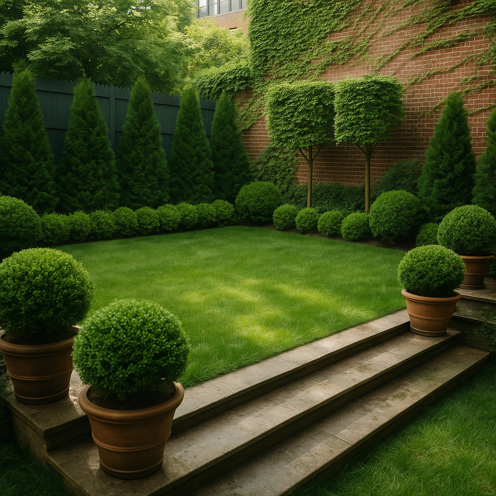 An over 100 year old restored & refurbished brooklyn heights brownstone combined a mix of modern and classic architectural the property had a back empty space which was transformed into an elevated simple & elegant brownstone garden with a simple plant palette of various shades of green and textures. The space was created to create an open lawn concept for gatherings, events, parties, and leisure for the family.