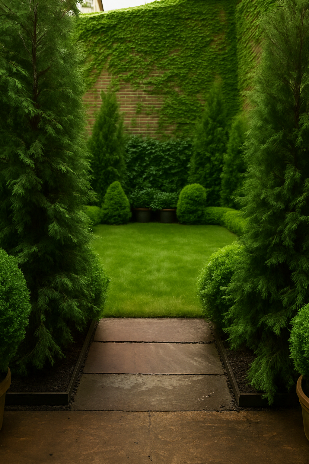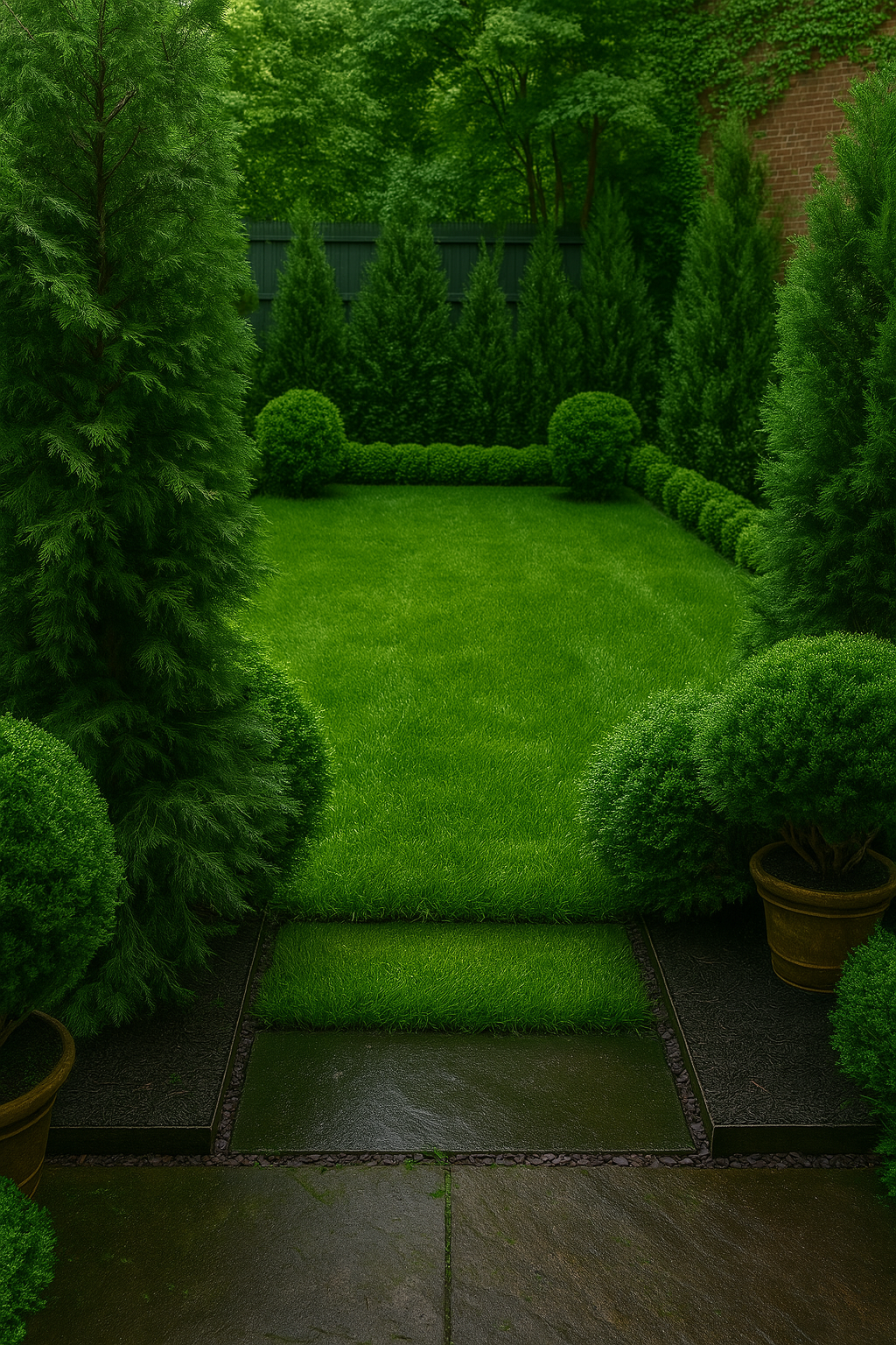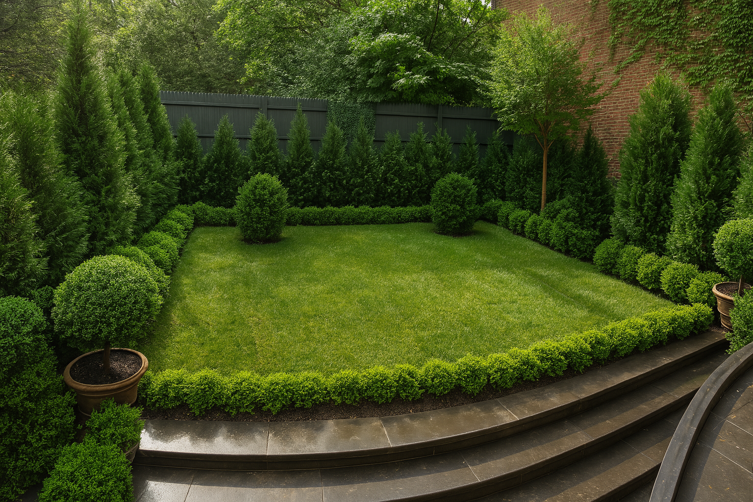An over 100 year old restored & refurbished brooklyn heights brownstone combined a mix of modern and classic architectural the property had a back empty space which was transformed into an elevated simple & elegant brownstone garden with a simple plant palette of various shades of green and textures. The space was created to create an open lawn concept for gatherings, events, parties, and leisure for the family.