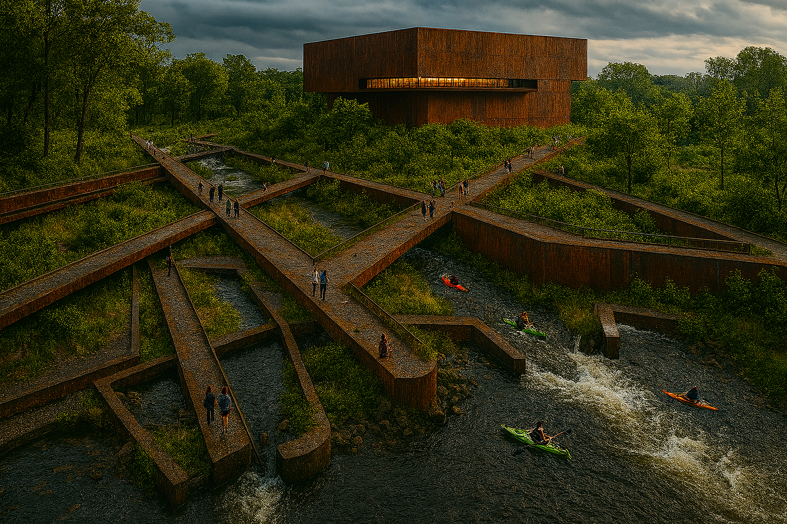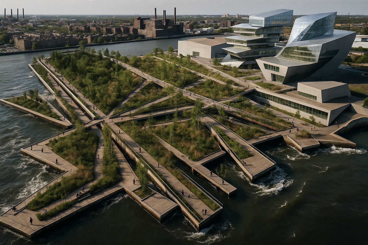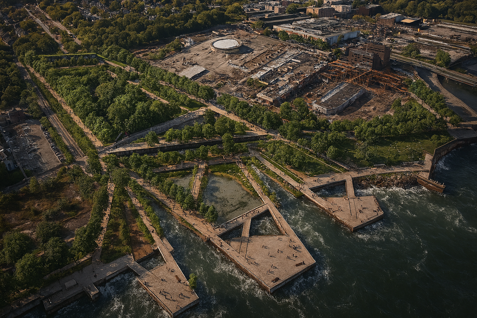 A park of such scale and impact requires a full modern creative direction. Water 4x was a full development, branded vision with a avant garde approach in design & development. A full branding vision, development strategy and landscape vision sets up a modern day park that goes beyond the traditional open space, park design planning and creation. Water 4x is a raw, wild, industrial, ecologically shifting modern park vision & design, meant to capture the industrial, decaying past & history of this forgotten parcel of waterfront land. Water 4x allows the tides, movement, flow and power & beauty of the sea to shape & shift the landscape, bringing its users closer to nature in a pure, raw way. Water 4x creates a completely unique experience for its users tearing up the classic model, formulaic idea of what a park can be. Nature takes over in everyday here at Water 4x, from season to season year to year the park is a completely new sensory, textural quality.