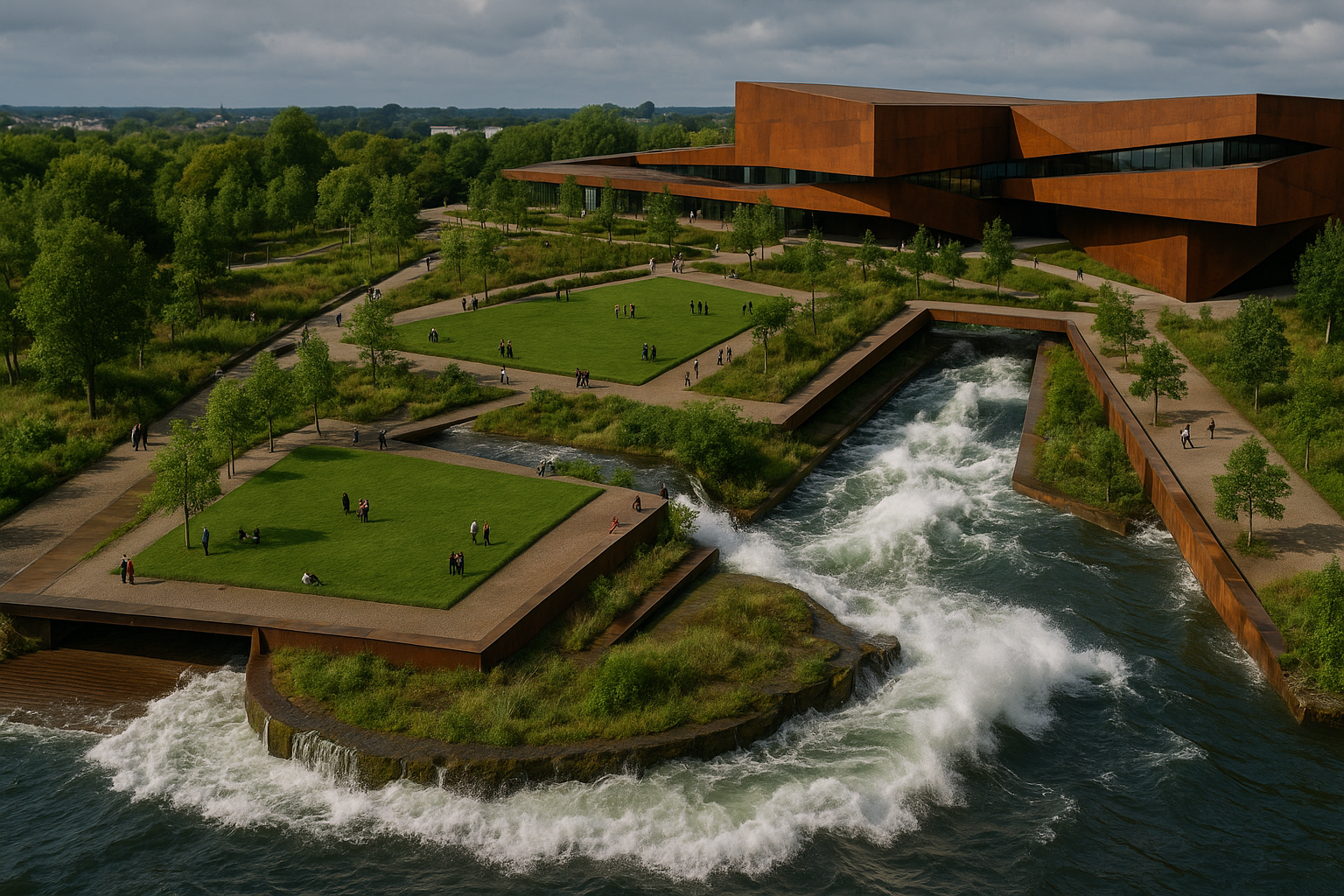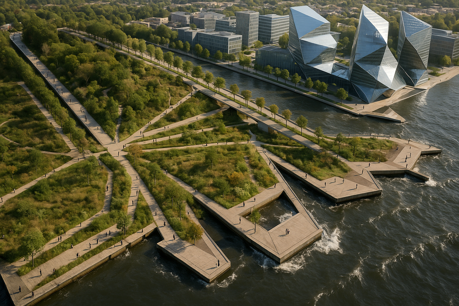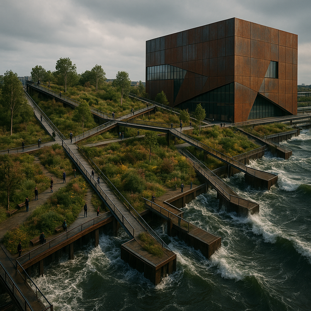 A park of such scale and impact requires a full modern creative direction. Water 4x was a full development, branded vision with a avant garde approach in design & development. A full branding vision, development strategy and landscape vision sets up a modern day park that goes beyond the traditional open space, park design planning and creation. Water 4x is a raw, wild, industrial, ecologically shifting modern park vision & design, meant to capture the industrial, decaying past & history of this forgotten parcel of waterfront land. Water 4x allows the tides, movement, flow and power & beauty of the sea to shape & shift the landscape, bringing its users closer to nature in a pure, raw way. Water 4x creates a completely unique experience for its users tearing up the classic model, formulaic idea of what a park can be. Nature takes over in everyday here at Water 4x, from season to season year to year the park is a completely new sensory, textural quality.