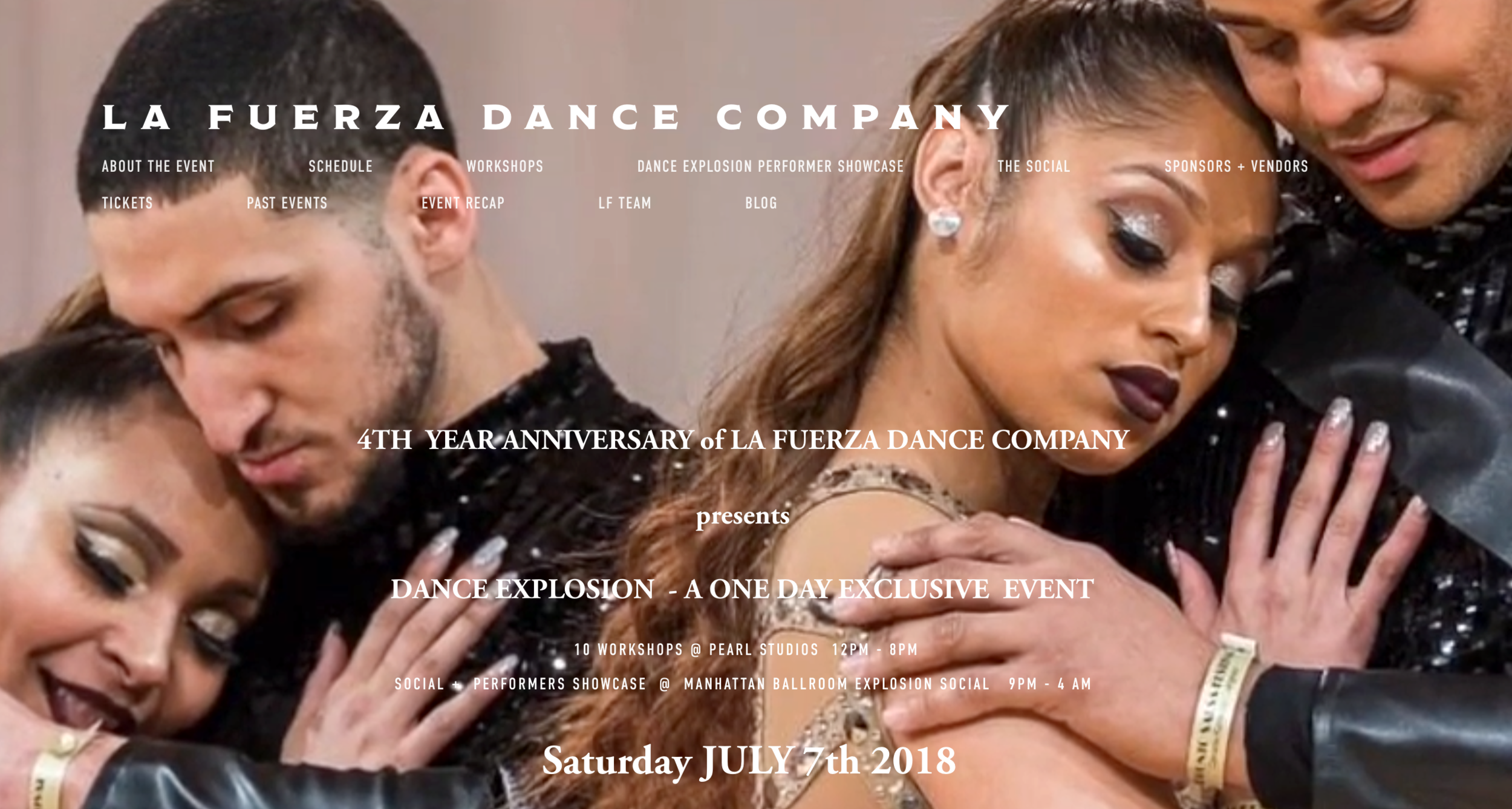 The La Fuerza Dance Company's 4 Year Anniversary - ONE DAY DANCE EXPLOSION EVENT was held on JULY 7th 2018, this SUMMER, is not only a celebration of the past year but the year ahead. The La Fuerza Dance Company has many new and exciting ventures and a new direction for the company. As a Dance Company we believe in creating a truly experiential and transformative brand, experience, and business. THE ONE DAY DANCE EXPLOSION EVENT is LA FUERZA's drive towards growth, expansion, and more diverse DANCE BRAND. So on July 7th come dance, party, laugh, sweat, train, meet new people and experience LATIN, POPULAR & STREET DANCE in various forms and styles on a unforgettable MID / EVENING SUMMER SATURDAY.