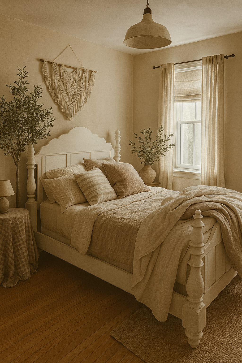 french country farm house aesthetic merges with a touch of bohemian vibe in this cozy, warm, & peaceful urban oasis in the heart of astoria queens. A mix of french farmhouse furnishings, material a touch of italian flare and natural soft hues adorn this large apartment gem.